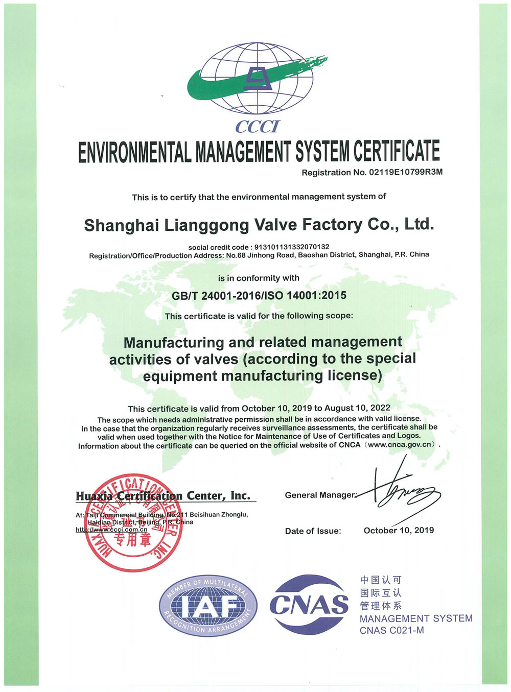 14001环境管理体系证书2